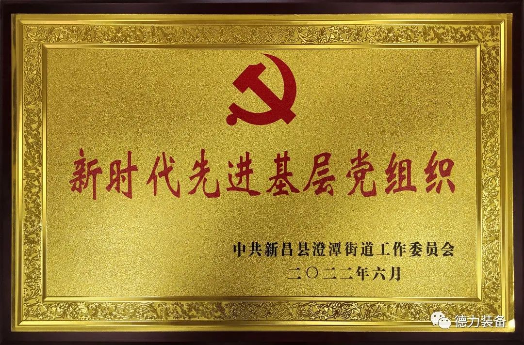 日前,德力裝備黨支部被澄潭街道工委授予“新時代先進(jìn)基層黨組織”榮譽(yù)稱號